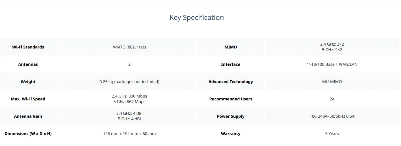 - 5 GHz: 867 Mbps
