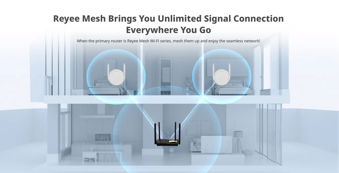 * Reyee Mesh brings you unlimited signal connection everywhere you go